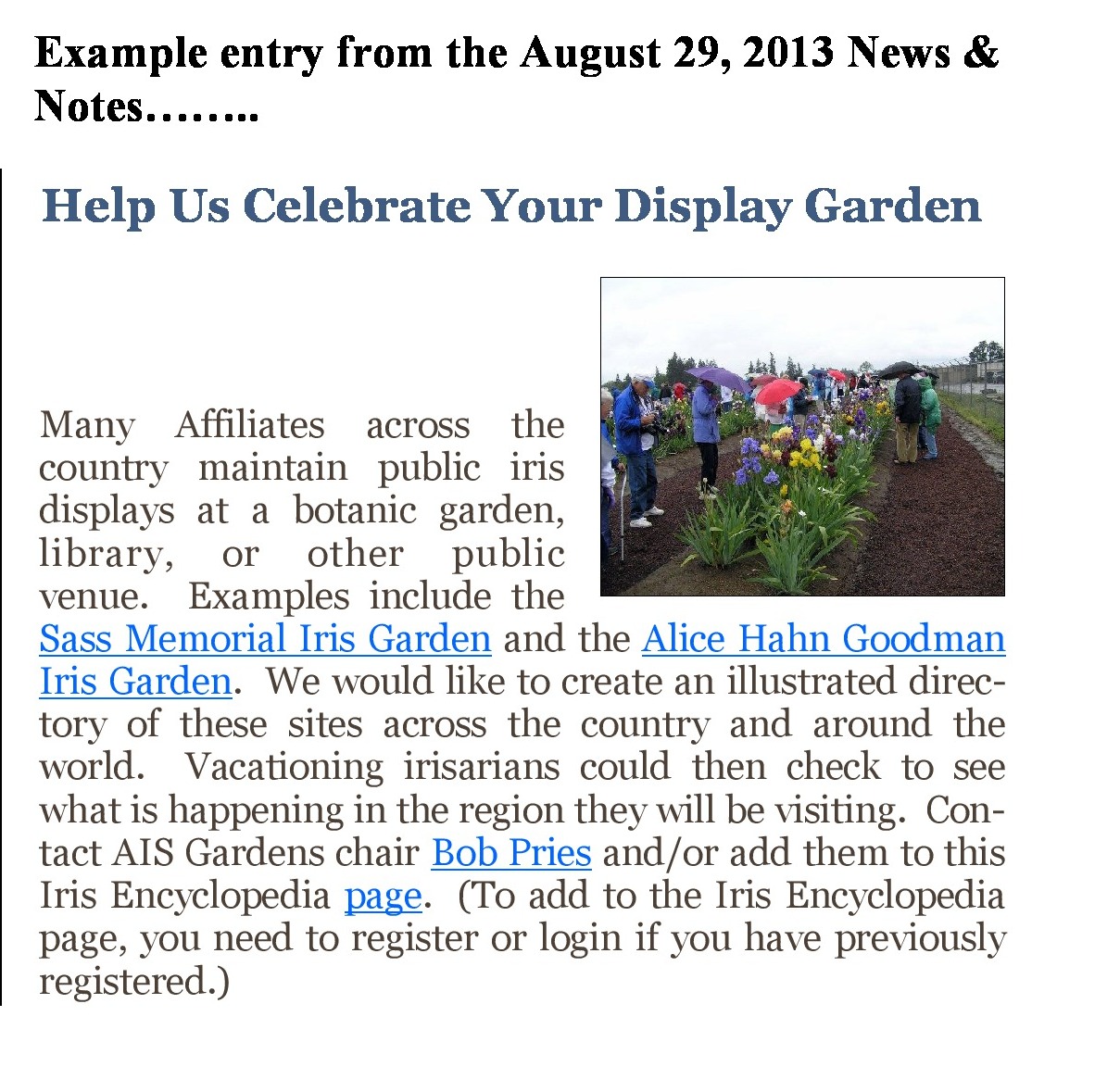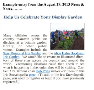 you already receive Irises, the quarterly publication of AIS. But did you know that AIS has launched News & Notes, a monthly email newsletter to keep members up to date on the latest happenings in the iris world?